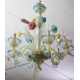 Lampadario a sei luci in vetro policromo di Murano (difetti e mancante di due elementi)