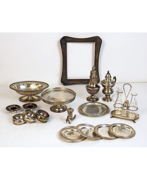 Lotto di numerosi oggetti in argento 800 e 925. Peso tot. gr. 1120