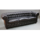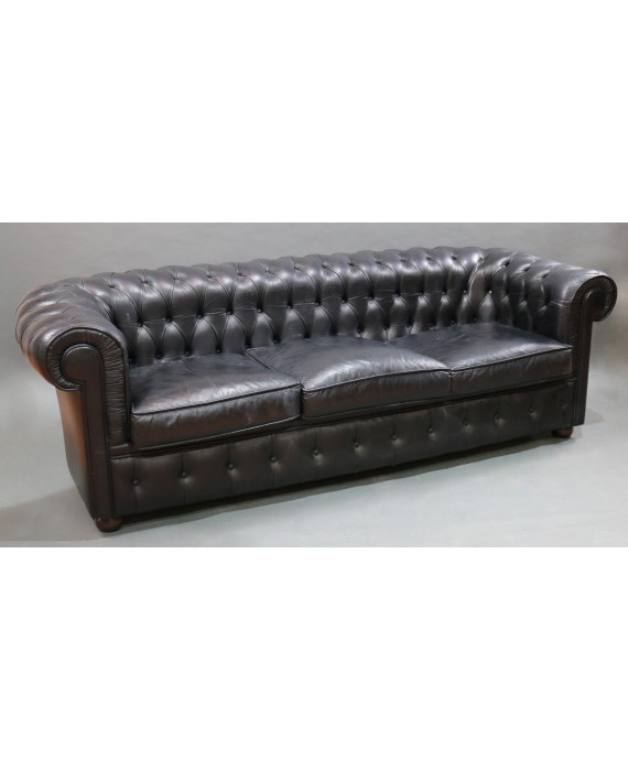Divano Chester, a tre posti, in pelle nera. (usure del tempo)