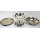 Lotto di una scatola con coperchio, due vassoi tondi ed un piatto, in argento 800. Peso tot. gr. 1790