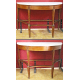 Coppia di console lastronate in legno di ciliegio, quattro sostegni mossi raccordati da traverse, piani in marmo. Italia, sec. XIX. cm85x132x66 (mancanze alla lastronatura e lievi difetti)