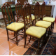 Gruppo di sei sedie in legno di noce con seduta rivestita in stoffa (difetti e una sedia senza seduta)