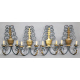 Serie di quattro applique a due luci in metallo dorato e verniciato. Alt. cm54 (lievi difetti)