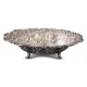 Elegante centrotavola in argento lavorato e sbalzato con serti floreali e scene di vita con personaggi, animali e caseggiati, stemma centrale inciso, quattro peducci a voluta. Bolli Londra, Regina Vittoria, 1857 - 1858, argentiere Robert Hennell. cm7x32x26. Peso gr. 1140,