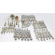 Servizio di posate in argento 800 composto da 12 forchette, 12 cucchiai, 12 coltelli, 12 forchette e 12 coltelli medi, 12 cucchiaini da caffè e 7 posate di servizio. Peso totale esclusi coltelli e due posate di servizio gr. 3300