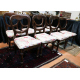 Gruppo di otto sedie in legno tinto a noce con gambe anteriori tornite e seduta rivestita in stoffa (difetti)