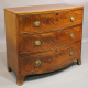 Comò a tre cassetti impiallacciato in legno di mogano. Inghilterra, inizi sec. XX. cm84x97x45 (difetti)