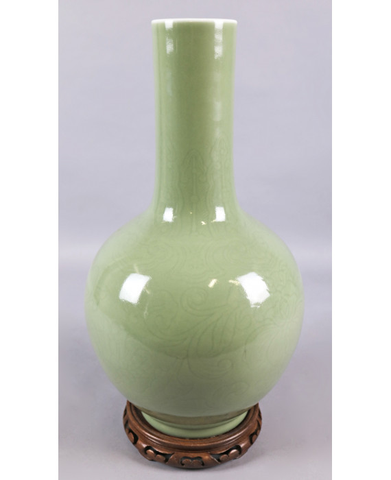 Vaso in porcellana celadon su base in legno. Cina, periodo della repubblica, sec.XX. Alt. cm50. (foro sul fondo)