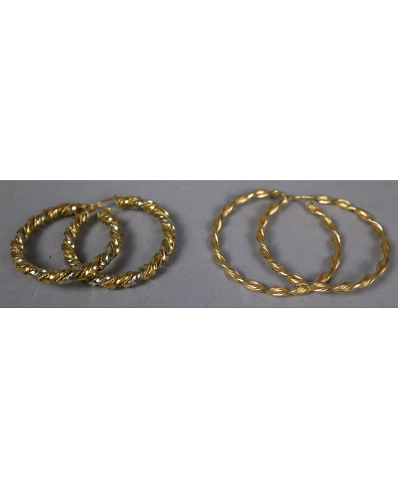 Lotto di due coppie di orecchini in oro giallo 18 kt a cerchio intrecciato. Peso tot. gr. 16,5. Allegata dichiarazione di autenticità del perito Federico Perinelli della gioielleria lo Smeraldo
