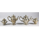 Servizio da tè e caffè in argento 800 con corpo costolato e pomoli a fiore, composto da teiera, caffettiera, lattiera e zuccheriera. Peso tot. gr. 1460