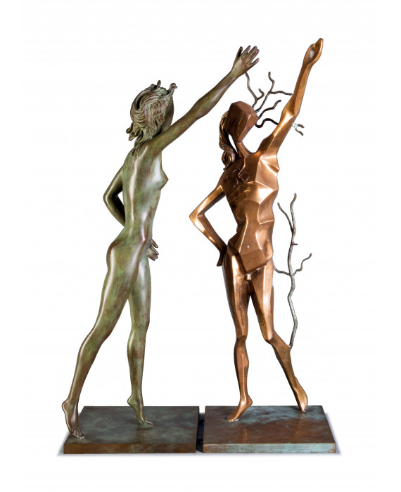 Omaggio a Tersicore. Lo spettacolo inteso come forma di esternazione ed esibizione fu alla base della personalità di Dali. Tutta la sua vita la trasformò in uno spettacolo dove gli attori erano le persone a lui care, come la sua "prima musa" Gala (sua moglie), fissando ambedue le danzatrici un un unico piedistallo, una in stile classico e l'altra in stile cubista. La prima idea per la scultura Omaggio a Tersicore, risale al 1977 e la prima fusione fu eseguita nel 1984, in quattro esemplari di grandi dimensioni
