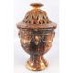 Braciere in terracotta smaltata e lavorata con serti di frutta e teste di ariete, Italia, sec. XIX. Alt. cm57 (scheggiature e restauri)