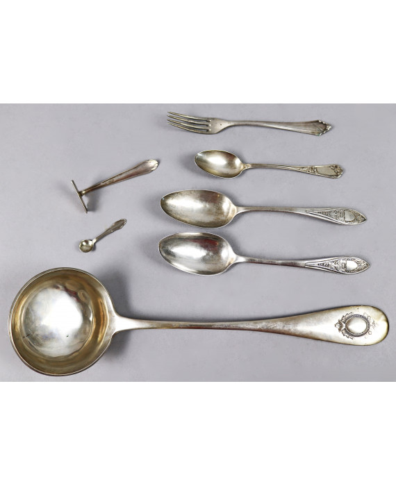 Lotto di varie posate in argento 800. Peso tot. gr. 420