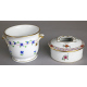 Lotto di un posacenere ed un vasetto biansato in porcellana dipinta con fiori, marcati sul fondo Herend