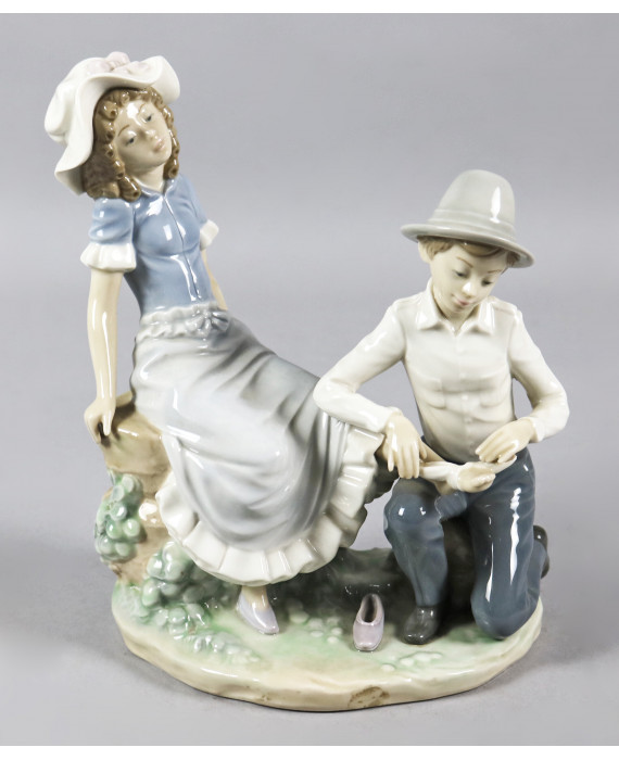 Gruppo "Bendaggio del piede" in porcellana marcata sul fondo Nao - Lladro. Alt. cm22