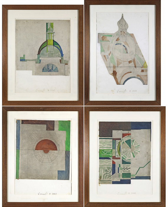 Signature firme in basso e numeri di archivioTechnique: Serie di quattro acquarelli su cartaSize: cm54x27