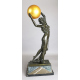 Fusione in bronzo patinato raffigurante danzatrice con sfera dorata, firmata in basso F. Preiss, su base in marmo. Alt. cm54