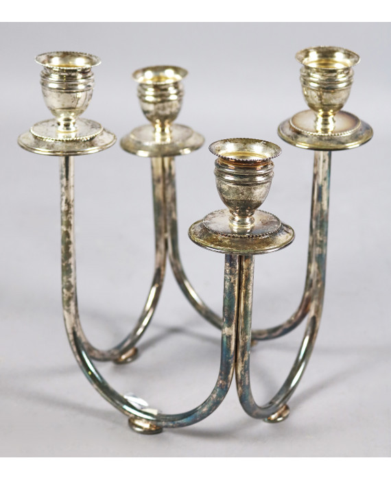 Candelabro a quattro fiamme in argento 800. Peso gr. 480
