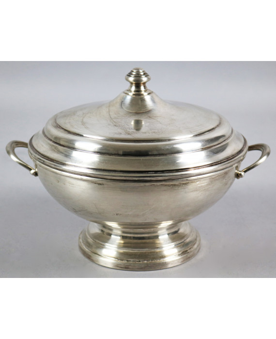 Zuppiera con coperchio in argento 800 a corpo liscio. Peso gr. 700