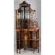 Mobile - angoliera impiallacciato in legno di palissandro ed intarsiato a volute vegetali e trionfi musicali, parte superiore a giorno con ripiani, colonnine e fondi a specchio, uno sportello bombato inferiore. cm210x57x75