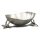 Particolare centrotavola in argento 800 a corpo liscio con conca sorretta da due granchi. Bolli Milano, periodo del fascismo, argentiere Sant'Elia. cm14x41x27. Peso gr. 1100