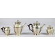 Servizio da tè e caffè in argento 800, corpo costolato, pomoli a cornucopia, manici in legno, composto da teiera, caffettiera, lattiera e zuccheriera. Bolli Milano, periodo del fascismo, argentiere Enrico Messulam. Peso tot. gr. 1315 (ammaccature e caffettiera mancante di manico)