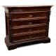 Importante canterano lastronato in legno e radica di noce, cinque cassetti, paraste laterali intagliate con cariatidi e serti vegetali. Italia centrale, sec, XVII. cm134x160x69 (restauri)