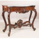 Console impiallacciata in legno di mogano intagliato a volute vegetali, quattro gambe mosse, piano in marmo. Italia, sec. XIX. cm98x123x46 (piccole mancanze all'impiallacciatura e restauro)