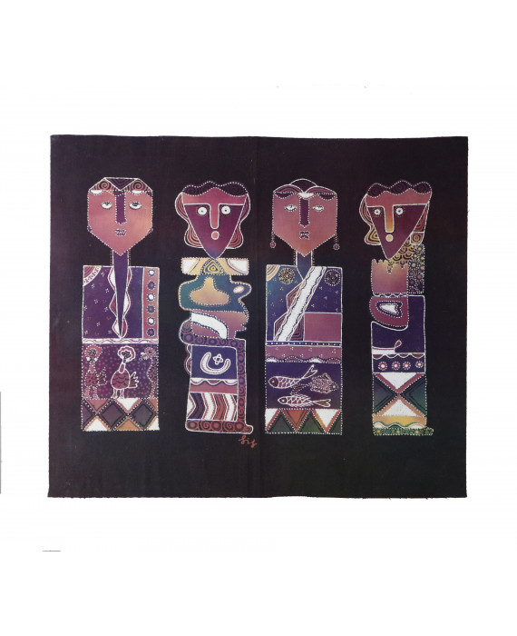 Batik su tessuto raffigurante figure orientali. India, sec. XX
