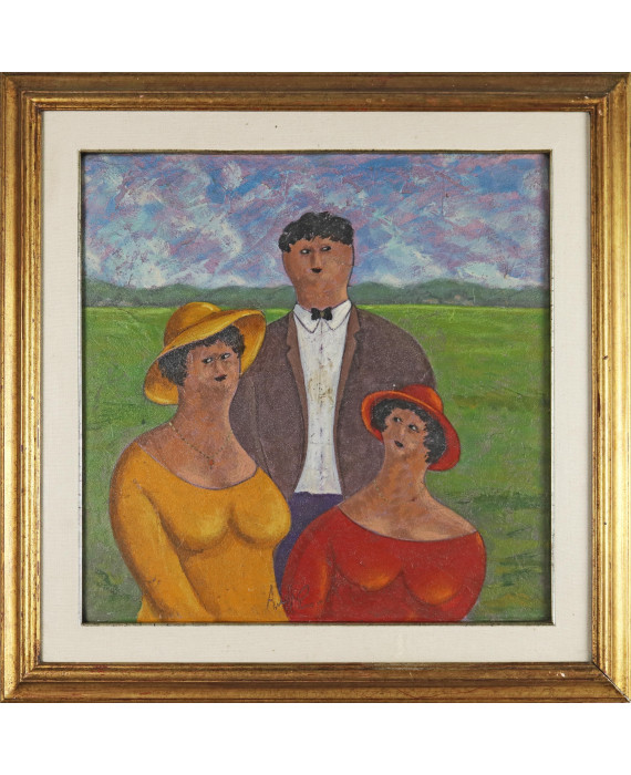 Signature firma in basso a destra al centroTechnique: Olio e tecnica mista su tavolaSize: cm49x49