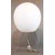 Lampada ovoidale da tavolo in vetro lattimo satinato, con base a tripode in metallo argentato. Alt. cm52