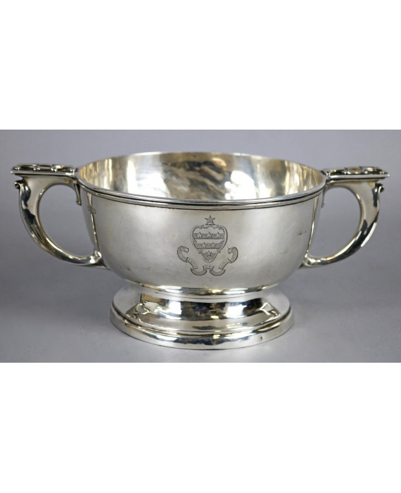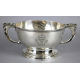 Centrotavola biansato in argento inciso con stemma nobiliare e motto. Bolli Chester inizi sec. XX. Peso gr. 1000. (limatura sul corpo del centrotavola)
