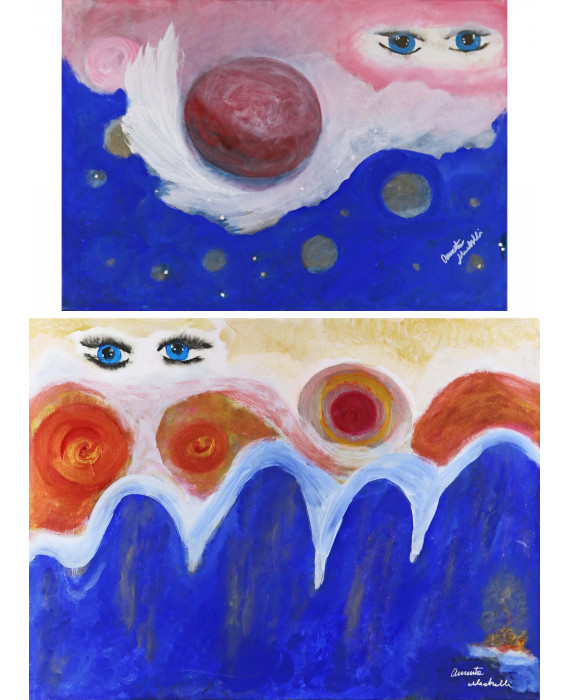 Signature firme, date, titoli su retroTechnique: Lotto di due dipinti acrilici su telaSize: cm45x65/80x60