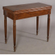 Tavolo da gioco impiallacciato in legno di mogano, apertura a libro con all'interno panno verde. cm75x86x42 (difetti)