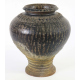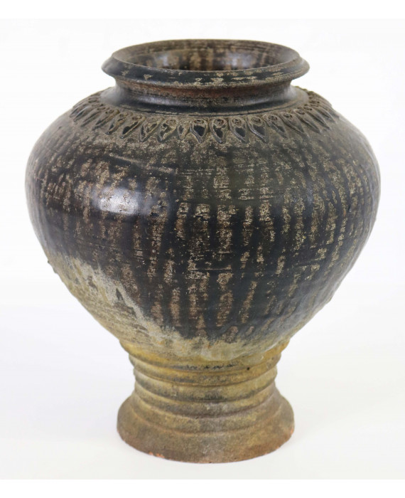 Vaso in terracotta smaltata a fondo marrone, di manifattura thailandese. Alt. cm26