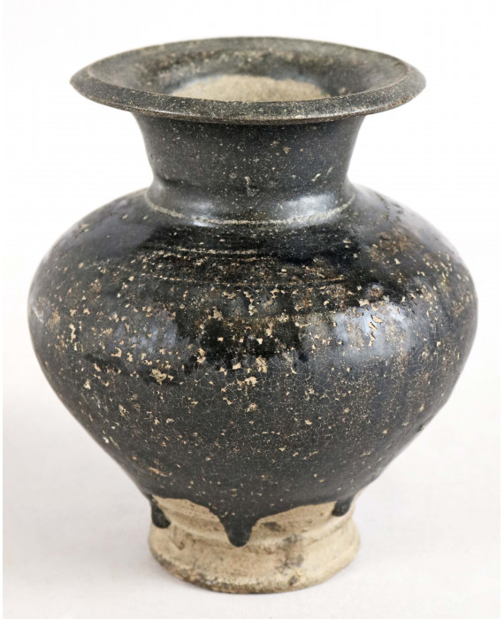 Vaso a balaustro in terracotta smaltata in nero, di manifattura cambogiana. Alt. cm18