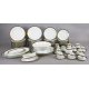 Servito in porcellana a fondo bianco decorata in oro, marcato sul fondo Richard Ginori, composto da 24 piatti piani, 12 piatti medi, 12 piattini, una salsiera, un'insalatiera, cinque piatti da portata, una zuccheriera e 11 tazze con piattino (lievi difetti)