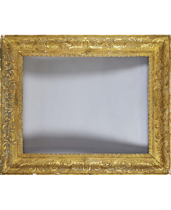Cornice in legno dorato intagliata a volute vegetali con fascia decorata a palmette. Italia, sec. XIX. cm61x51; luce cm46x36 (mancanze alla doratura()