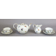 Servizio da tè in porcellana bianca decorata in oro e dipinta a fiori, marcata sul fondo Meissen, composto da teiera, lattiera e due tazze con piattino