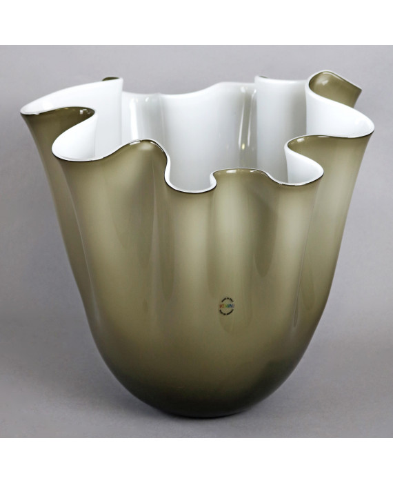Grande vaso a fazzoletto in vetro incamiciato di Murano a fondo fumè, firmato sul fondo Venini 2011. Alt. cm32