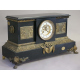 Orologio da tavolo in marmo nero con placche in metallo dorato con scene classiche, fascia e peducci in bronzo, quadrante in smalto con numeri romani. Francia, sec. XIX. cm33x61x23 (da revisionare)