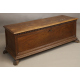 Antica cassapanca in legno di noce con fronte e laterali riquadrati, sostegni anteriori a zampa. cm55x160x55