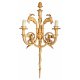 Elegante applique a due fiamme in bronzo dorato e finemente lavorato con teste di caproni, uccelli con ghirlande di frutta, volute vegetali e volto femminile. Alt. cm61