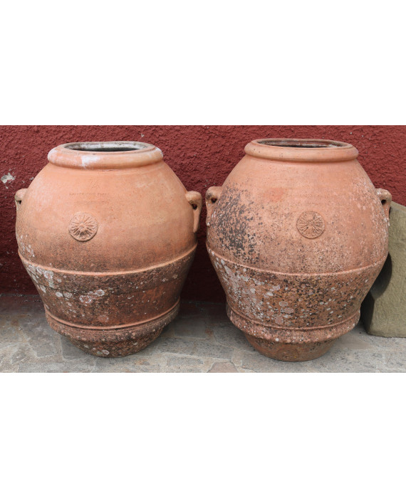 Lotto di due orci in terracotta firmati Domenico e figli Ricceri Impruneta. Alt. cm85