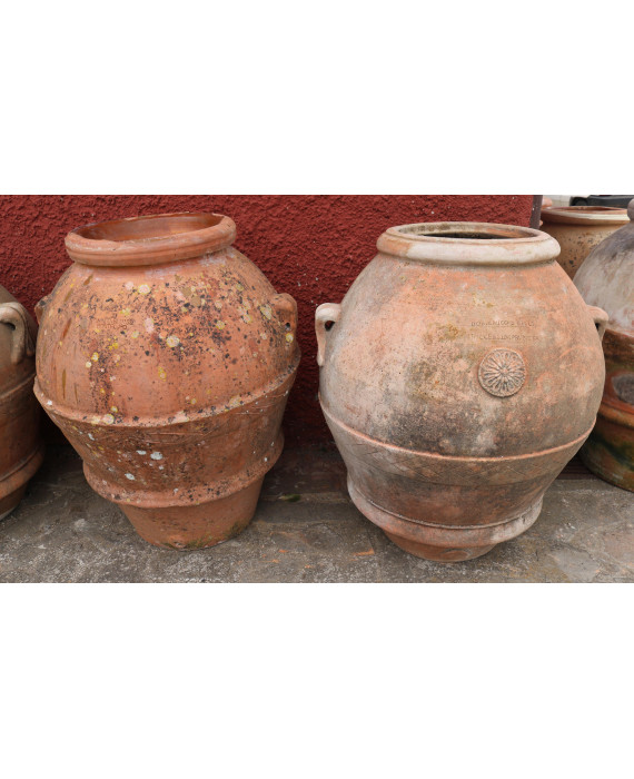Lotto di due orci in terracotta firmati Carlo Bitossi Montelupo e Domenico e figli Ricceri Impruneta. Alt. cm90/88