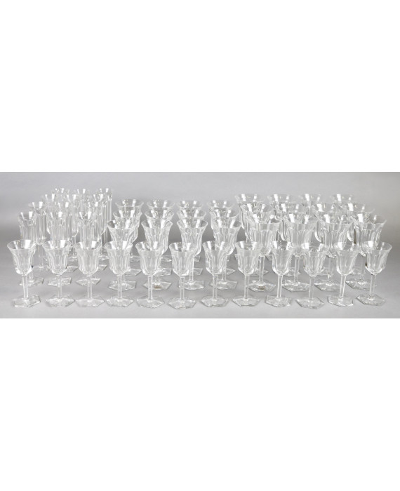 Servizio di bicchieri in cristallo marcato Baccarat, modello Mailmaison, composto da 12 bicchieri da acqua, 12 da vino, 12 da liquore e 12 flute (lievi scheggiature)