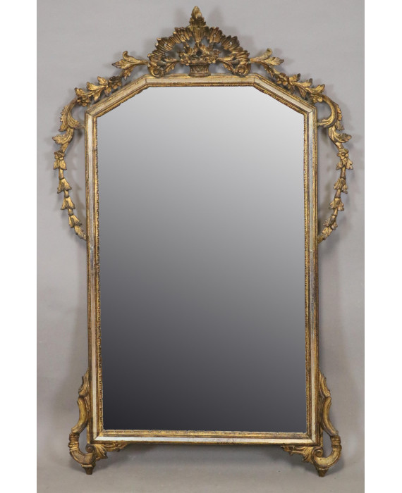 Specchiera in legno dorato ed intagliato con serti vegetali e fiori. cm118x75 (lievi difetti)
