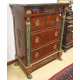 Mobiletto impiallacciato in legno di mogano, quattro cassetti, applicazioni in bronzo, paraste laterali e piano in marmo. cm102x82x46