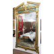 Elegante specchiera a tempietto in legno e stucco dorato, dipinto a fondo verde ed intagliato con cariatidi, sfingi e volute. Italia, fine sec. XIX. cm190x104 (lievi difetti)