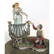 Gruppo in porcellana dipinta raffigurante scena galante, firmata sul lato, montata base rivestita in velluto. cm29x24x10 (lievi difetti)